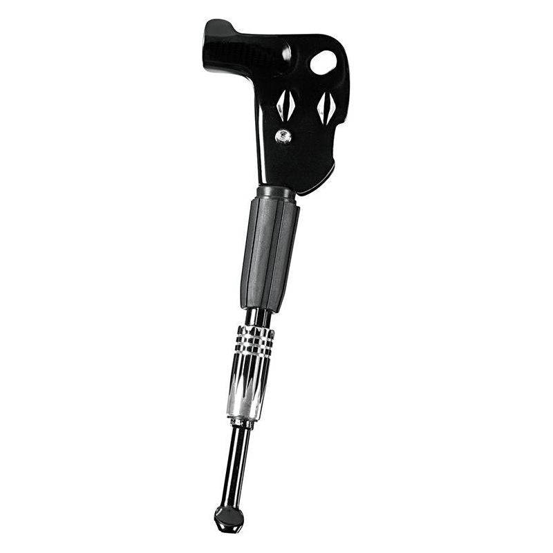 Kleine zijstandaard voor montage op as, in lengte verstelbaar zonder gereedschap voor 16", 18" en 20" fietsen wielmaat: 16" - 20" materiaal: AL 6061 afwerking: zwart gewicht: ~164 g