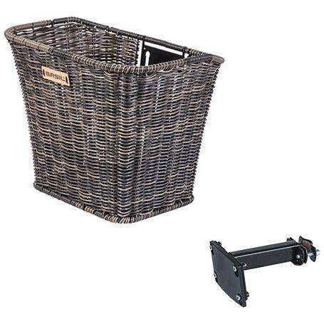 De Basil Rattan Look FM is een fietsmand van kunststof rotan. De moderne mand kan je bevestigen aan het stuur van een dames- of herenfiets door middel van de Basil FM stuurpenhouder.