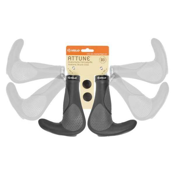 ergonomische vorm met geïntegreerde bar-ends met klem gemaakt van hoogwaardig rubbermengsel gemaakt van D3 - 3-componentenmengsel met gel lengte 138 mm