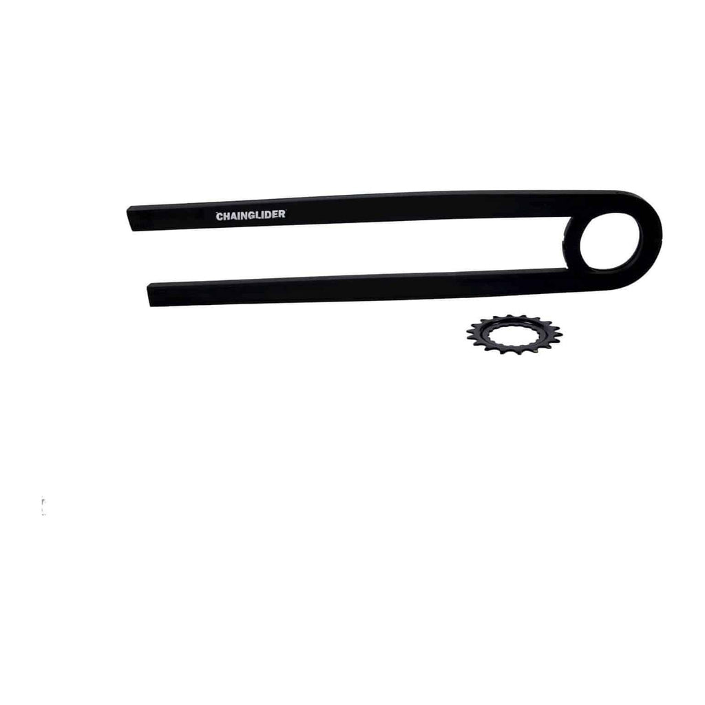 Hebie voorstuk Chainglider 18t Bosch 2. Generation zwart lang, incl tandwiel, benodig achterstuk is artikel HCG350RBE1 afstand gemeten hart op hart trapas en achteras is 484-535mm