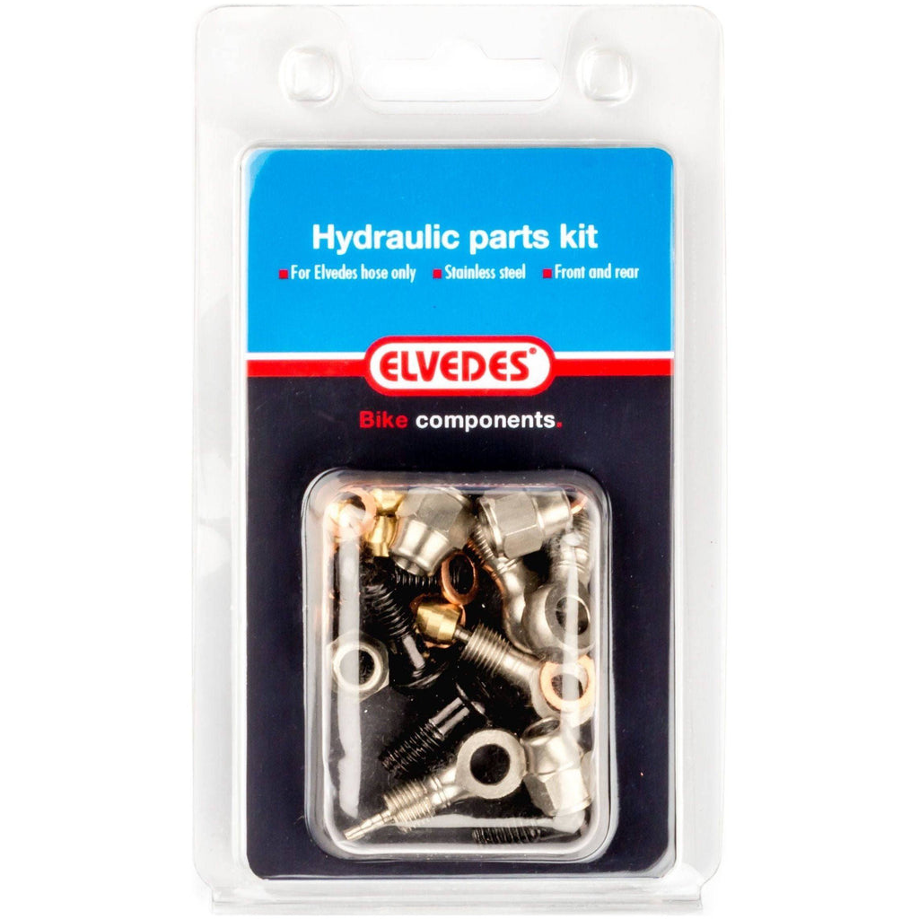 Onderdelenset voor het aansluiten van o.a. een Formula Oro / Shimano M965, M966 voor- en achterrem op de hydraulische leiding van Elvedes. banjo + banjo + diverse RVS onderdelen.