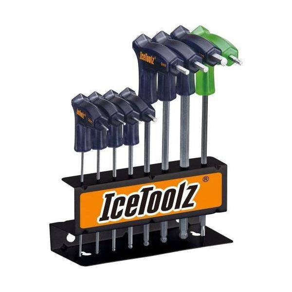 8 delige inbussleutelset van Icetool met opbergstandaard (kan ook aan de muur bevestigd worden). Specificaties: Maat: 2 - 2,5 - 3 - 4 - 5 - 6 - 8 millimeter met kogelkop + Torx T25 stersleutel Materiaal: nickel-chromoly staal Sleutels zijn uitgevoerd met ergonomisch T-handvat