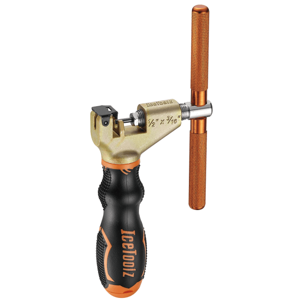 IceToolz Pro Shop kettingpons, artikel nr.: 62B7, Cr-Mo staal, voor kettingen van elektrische fietsen. Toepasbaar voor 1/2x3/16 kettingen. Inclusief verbindingsklinknagel breker. Een speciaal gevormde geleider zorgt voor de juiste kettingpositie zodat je deze niet meer met de hand hoeft te plaatsen. Voorkomt vette vingers. Gepatenteerd.