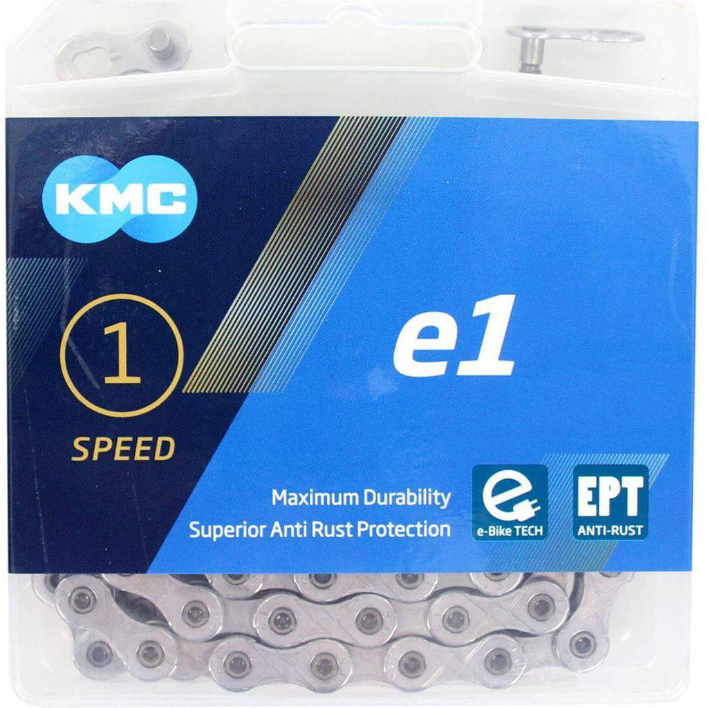 KMC ketting E1 EPT 130 schakels, 1/2 X 3/32, Extreem duurzame smalle single speed ketting voor naaf versnelling met EcoProteQ anti roest behandeling uitstekend geschikt voor e-bike, ook mid motor