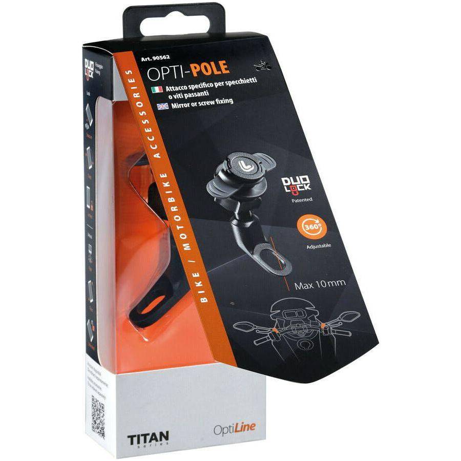 De rubberen bal vermindert schokken en trillingen. Verstelbaar bevestigingssysteem. Zware metalen spuitgieten structuur. Compatibel met alle Opti Line gevallen hoezen. DUOLOCK snelbevestiging/ontgrendelingssysteem. Diameter montagebout max. 10 mm 360 graden draaibaar