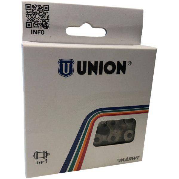 Product informatie: Afmeting: 1/2" x 1/8" Lengte: 112 schakels Afwerking: zwart Design: bush-less Treksterkte: 920 kilogram Geschikt voor single speed en versnellingsnaaf met 1/8" tandwiel Verbindingsschakel: set UN-33 meegeleverd