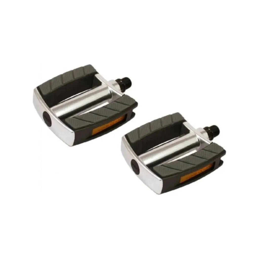 Een fietspedaal met aan beide kanten een grote "antislip" inzet en een robuust aluminium ashuis speciaal ontworpen voor het gebruik op elektrische fietsen. Ook te gebruiken op stads-, trekking- en hybridefietsen. FUNCTIES De gesloten cassette (cartridge) lagering zorgt voor een wrijvingsloze beweging De pedalen zijn elk aan twee kanten voorzien van geïntegreerde goedgekeurde reflectoren en de gesloten lagering TECHNISCHE INFORMATIE Type pedaal "3 componenten pedaal", dat bestaat uit: - een gegoten aluminium ashuis, glanzend kogelgepolijst of zwart (electro dyed black) - de kooi van het pedaal is gemaakt van zwart polypropyleen - de extra grote "antislip" inzet in de kooi is gemaakt van een grijs TPE (thermo-plastic-elastomeer). Kogellager Een onderhoudsvrij lagersysteem "industriestandaard", aan beide zijden Elk pedaal is voorzien van een gesloten cassette (cartridge) lager en een glijbus As CrMO-staal, door middel van een hitte behandeling gehard tot 75HRA (+/-3) Met 9/16"- 20 TPI draad Reflectoren Geïntegreerd in kooi van het pedaal Goedgekeurd volgens BS, JIS, TPP, alsmede volgens de Duitse StVZO normen Afmetingen 111* x 90 x 27 mm (*lengte x breedte x hoogte) *lengte = maximale lengte pedaal gemonteerd (deel wat uitsteekt buiten het trapstel) Gewicht 504 gr/per stel Normering Het pedaal voldoet aan de ISO normering. ISO 4210-8: "Fietsen-Veiligheidseisen voor fietsen- Testmethoden voor pedaal en trapstel"