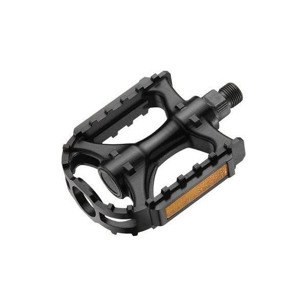 Een fietspedaal vervaardigd van duurzaam polypropyleen, speciaal ontworpen voor trekking- en ATB fietsen. FUNCTIES: De pedalen zijn voorzien van een duurzaam kogellager systeem De pedalen zijn elk aan twee kanten voorzien van geïntegreerde goedgekeurde reflectoren TECHNISCHE INFORMATIE: Type pedaal Een "1 component pedaal" vervaardigd van een zwart Polypropyleen Kogellager Verstelbaar kogellager systeem, volgens het "kogel&kegel" principe, aan beide zijden Met 11 x 5/32" gelagerde kogels aan beide zijden As Boron staal, door middel van hitte behandeling gehard tot 75HRA (+/-3) Met 9/16" - 20 TPI draad Reflectoren: Geïntegreerd in de kooi van het pedaal Goedgekeurd volgens BS, JIS, TPP alsmede StVZO Afmetingen: 108 x 24 x 27mm (lxbxh) Gewicht 292 gr. per stel