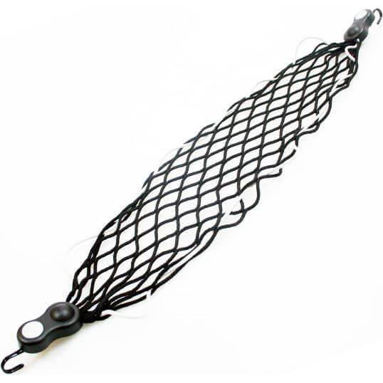 Mirage bagagenet/spin-netje/balnet met haken, het netje is 49-100 cm lang en 5-45 cm breed.Inclusief de lengte van de haken is de lengte 62-113 cm lang.