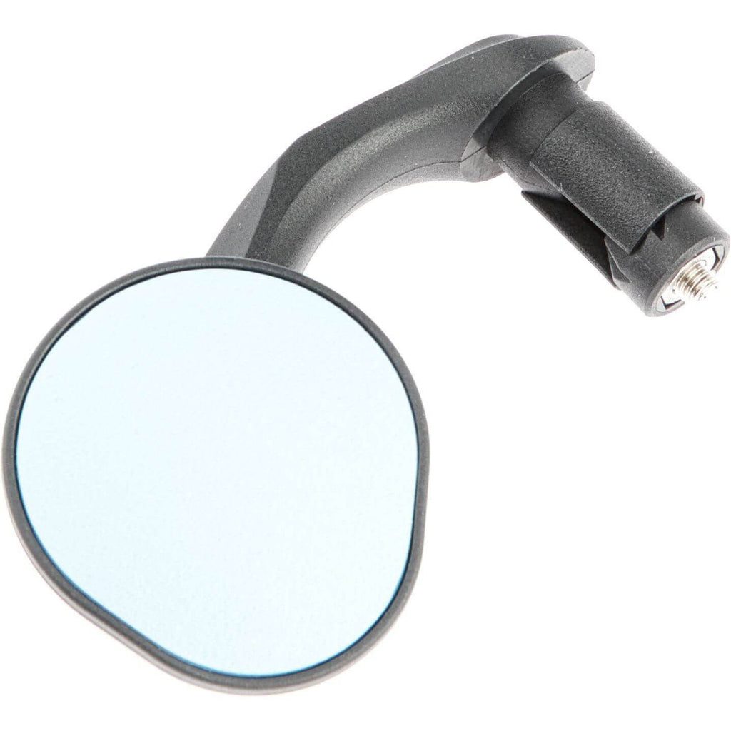 Mirage spiegel Minor, bar-end links of rechts, zwart, spiegel verweert niet en is beveiligd bij breuk, Kleur glas: blauw vlak glas: vervormt het beeld niet. Diameter 50mm. Stuurbocht diameter van 17.0mm tot 21.0mm