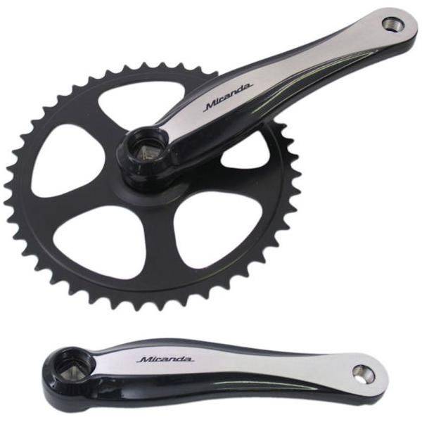 Het Miranda Beta 1+ Crankstel is een hoogwaardig crankstel dat speciaal is ontworpen voor gebruik met 3/32" kettingen. Het crankstel heeft een groot kettingblad met 46 tanden, wat zorgt voor een efficiënte overbrenging van kracht tijdens het fietsen. Het crankstel is gemaakt van aluminium, waardoor het licht van gewicht is en tegelijkertijd duurzaam en sterk. De zwarte afwerking geeft het crankstel een moderne en stijlvolle uitstraling.Dankzij het hoogwaardige ontwerp en de kwalitatieve materialen, biedt het Miranda Beta 1+ Crankstel uitstekende prestaties en betrouwbaarheid tijdens je fietstochten. Het is een geweldige toevoeging aan je fiets, waarmee je probleemloos kunt genieten van soepel trappen en een comfortabele fietservaring.