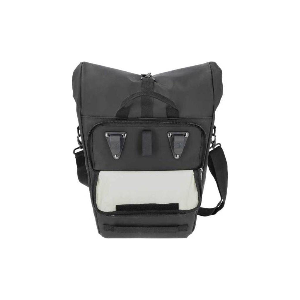 De New Looxs Nyborg Single fietstas biedt een combinatie van functionaliteit, duurzaamheid en een eigentijds ontwerp. Gemaakt van waterdicht 500D polyester met TPU coating, beschermt de tas de inhoud tegen regen en andere weersinvloeden. Het ruime hoofdvak biedt voldoende opbergruimte, inclusief een verstevigd vak voor een 13-inch laptop. De fietstas heeft een hip design met een handige gespsluiting en geïntegreerde reflectie-elementen voor zichtbaarheid in het donker. Een schouderband zorgt voor draaggemak en de klittenband strip houdt de tas stevig op zijn plaats aan de zijkant van de bagagedrager. Het waterdichte 500D materiaal zorgt ervoor dat je spullen droog blijven, zelfs tijdens een kleine regenbui. Mocht de tas vuil worden, dan kun je deze eenvoudig afnemen met een vochtig doekje.
