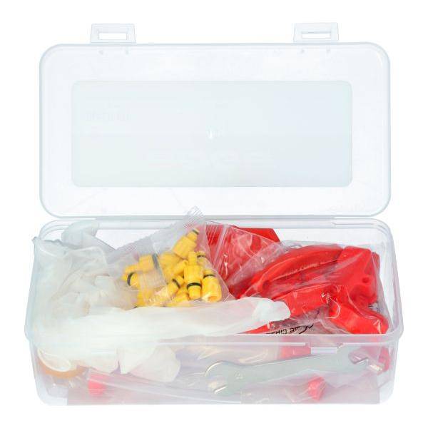 Deze standaard ontluchtingsset is voor het onderhoud van remsystemen en kan op vrijwel alle remtypen worden gebruikt, inclusief hydraulische remmen. Met hoogwaardige accessoires zorgt deze set voor een eenvoudig en effectief ontluchtingsproces. Ideaal voor doe-het-zelvers en professionals!