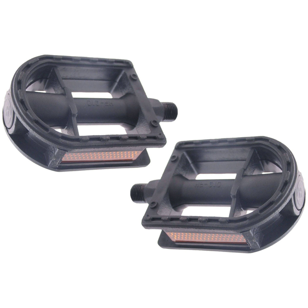 De Edge Kiddy Pedalen zijn ideaal voor op een kinderfiets. Het lichtgewicht pedaal beweegt soepel zodat een kind deze eenvoudig in beweging krijgt. Aan beide zijden van de pedalen zit een reflector zodat het kind veilig aan het verkeer kan deelnemen. De Edge Kiddy kunststof fietspedalen zijn voorzien van een antislip laag voor gladde kinderschoenen. De pedalen hebben een draad die geschikt is voor kinderfietsen en zijn te monteren met behulp van een universele pedaalsleutel. Produktspecificaties: Materiaal behuizing: kunststof Dunne draad - 1/2 inch Afmeting pedaal: 95 x 65mm Gewicht: 179 gram (per paar) Inclusief reflectors Kleur: zwart