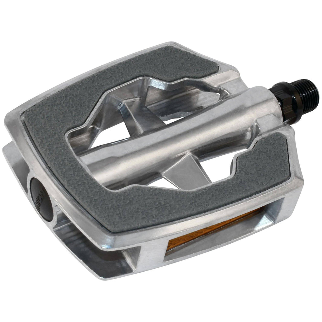 Aluminium body, kooi van polypropyleen met reflector, geschikt voor e-bikes Asmaat: 9/16" 3/32" kogellager anti-slip inlay Kleur: zilver