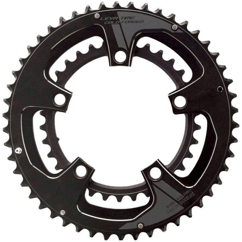 Praxis kettingblad Buzz 130BCD. De Buzz ring serie heeft koud gesmede kettingbladen die zorgen voor een hardere en betere bestendigheid tegen slijtage dan CNC gefreesde tandbladen. Daarnaast biedt dit proces het voordeel dat de Levatime eenvoudig toegepast kan worden. LevaTime is een unieke techniek waarbij alle tanden een eigen vormgeving hebben, die er voor zorgen dat een ketting perfect van het binnen- naar het buitenblad kan schakelen. De Buzz kettingbladen zijn verkrijgbaar in 110BCD: 46/36, 48/32, 50/34, 52/36 en 130BCD: 53/39 tanden combinatie. Geschikt voor 10, 11 en 12 speed kettingen. Wordt geleverd inclusief vervangbare ketting opvang pin. Voor optimaal schakel performance perfect te gebruiken in combinatie met Di2, EPS of eTap schakelsystemen. Compatible met mechanisch en elektronisch schakelen systemen van Shimano, SRAM en Campagnolo.
