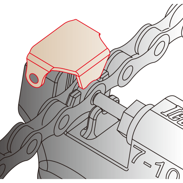 - Een speciaal gevormde geleider zorgt voor de juiste kettingpositie zodat je deze niet meer met de hand hoeft te plaatsen