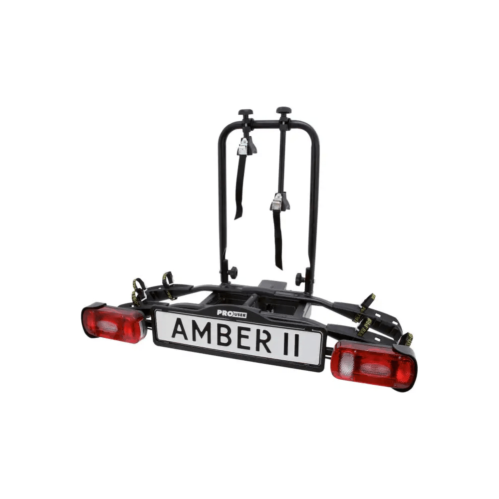 De Pro-User Amber II is een gebruiksvriendelijke en lichtgewicht fietsendrager voor het vervoeren van 2 fietsen. Dankzij de gepatenteerde snelkoppeling plaats je de drager eenvoudig en stevig op de trekhaak. De fietsen worden stabiel vastgezet in brede kunststof wielhouders, terwijl de framebevestiging voorkomt dat er druk komt op het crankstel.