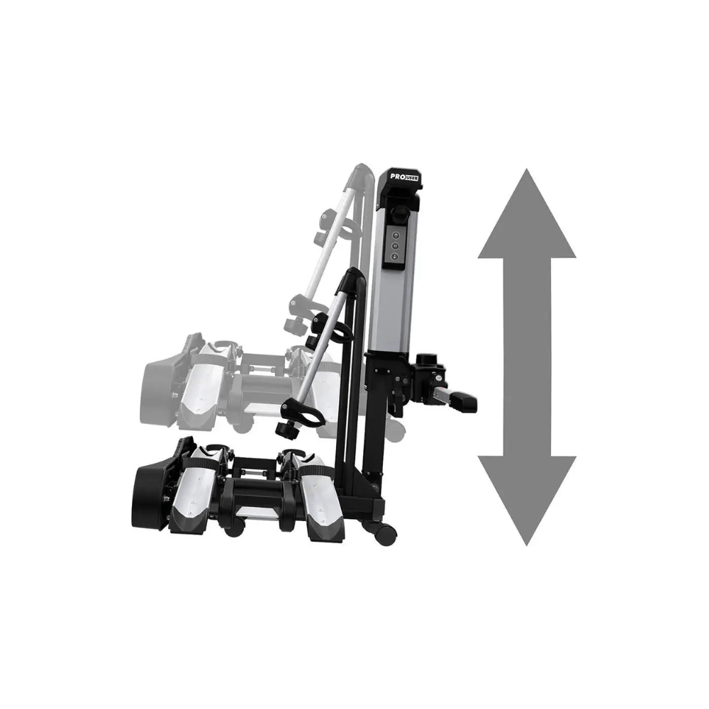 De Pro-User Diamant Bike Lift is uniek in zijn soort: een inklapbare fietsendrager met een elektrisch liftsysteem. Met één druk op de knop laat je de drager eenvoudig zakken of omhoog liften via het bedieningspaneel. Dankzij de geïntegreerde wieltjes hoef je de drager niet meer te tillen, wat het gebruik nog comfortabeler maakt.