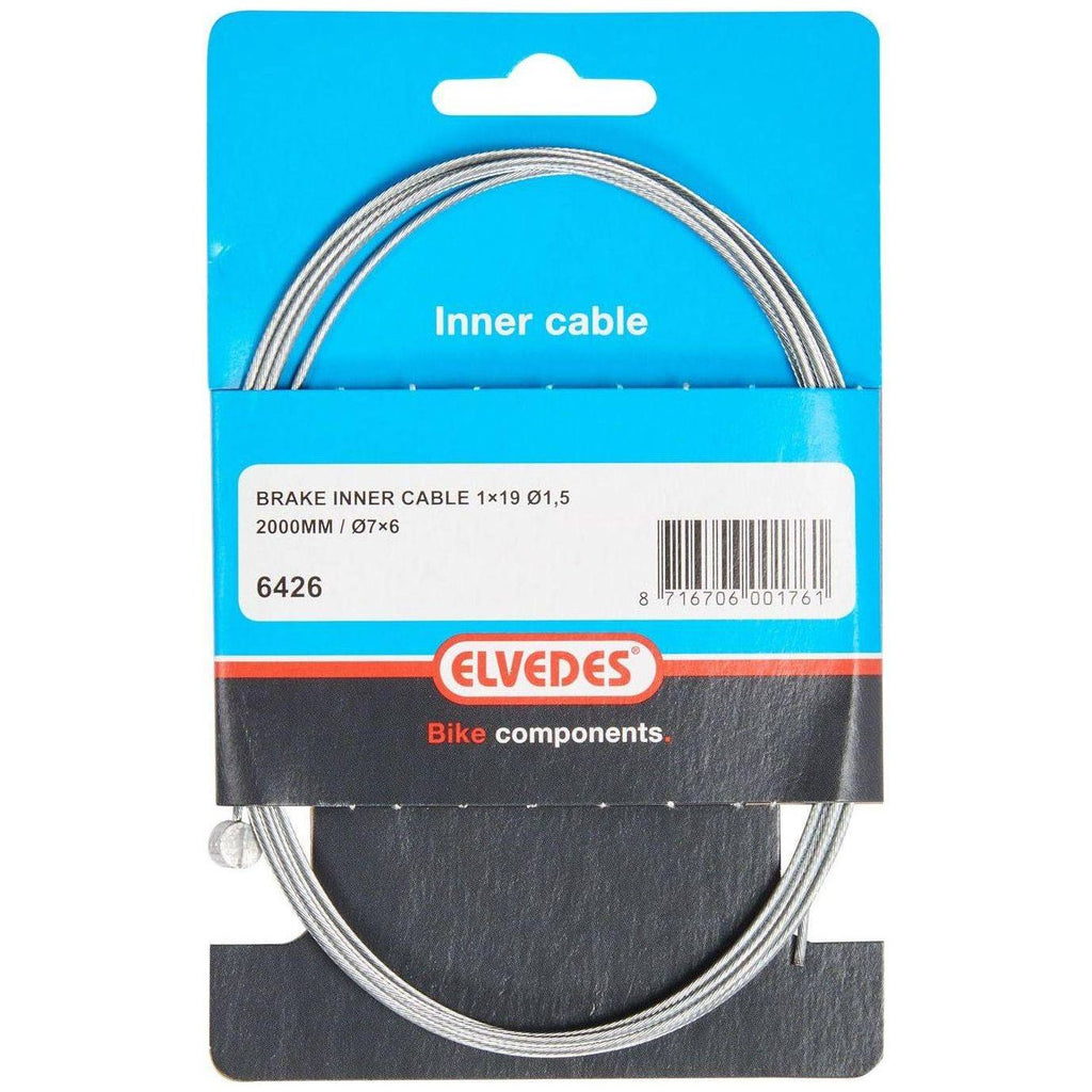 Merk: Elvedes Kabeltype: rem binnenkabel Afmetingen nippel: ø7 × 6 mm Kabeldiameter: ø1,5 mm Lengte: 2000 mm Nippeltype: T-nippel Materiaal: verzinkt Kleur: zilver
