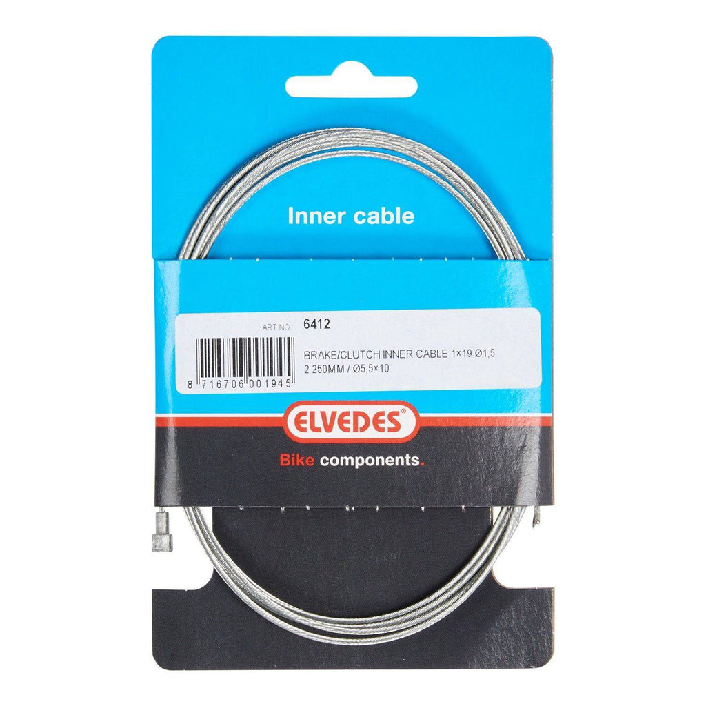 Verzinkte binnenkabel van Elvedes, voorzien van een V-nippel Ø5,5 mm ×10 Lengte: 2250 mm Diameter: 1,5 mm Aantal draden: 19 Materiaal: Verzinkt V-nippel Ø5,5×10