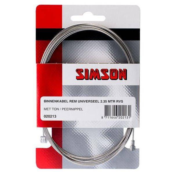 De Simson Rem Binnenkabel is gemaakt van roestvrijstaal zodat de kabel minder snel rekt. Met een lengte van 2.35 meter is deze binnenkabel geschikt voor zowel voor- als achterrem. De sterke kabel heeft aan het uiteinde een universele ton- en peernippel.