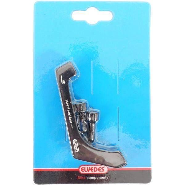 Remklauw montage adapter van Elvedes, geschikt voor de montage van een remklauw met Flat Mount bevestiging aan een achterbrug met Post Mount montage in combinatie met een Ø160 mm remschijf.