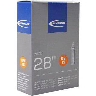 Schwalbe binnenband Smal Road 26 Inch Hollands - DV15/18-622, 20-622, 22-622, 23-622, 25-622, 28-622*, 22-630, 25-630. De Schwalbe binnenbanden zijn betrouwbaar. Fietsdetaillisten waarderen hem om zijn hoge betrouwbaarheid. Iedere band wordt in de fabriek opgepompt en zo 24 uur op luchtdichtheid getest. De band houdt de luchtdruk langer vast. In de productie vereist Schwalbe een zeer hoog butyl aandeel en een zeer hoge reinheid van het materiaal. Zo houdt de Schwalbe binnenband de luchtdruk beduidend langer vast dan andere binnenbanden. Het is een groepen-binnenbandsysteem: Een Schwalbe binnenband is extreem elastisch en past op meerdere bandafmetingen. Hierdoor worden ze groepen binnenbanden genoemd. Zo past bijvoorbeeld de binnenband met nummer 19A voor bandafmeting van 27.5 inch tot 29 Inch en voor de breedte van 40 tot 62mm. Als laatste is de band 100% volledig recyclebaar. Standaarduitvoering: Hoge betrouwbaarheid, al vele jaren beproefd. *Niet in de Extralight-uitvoering verkrijgbaar.