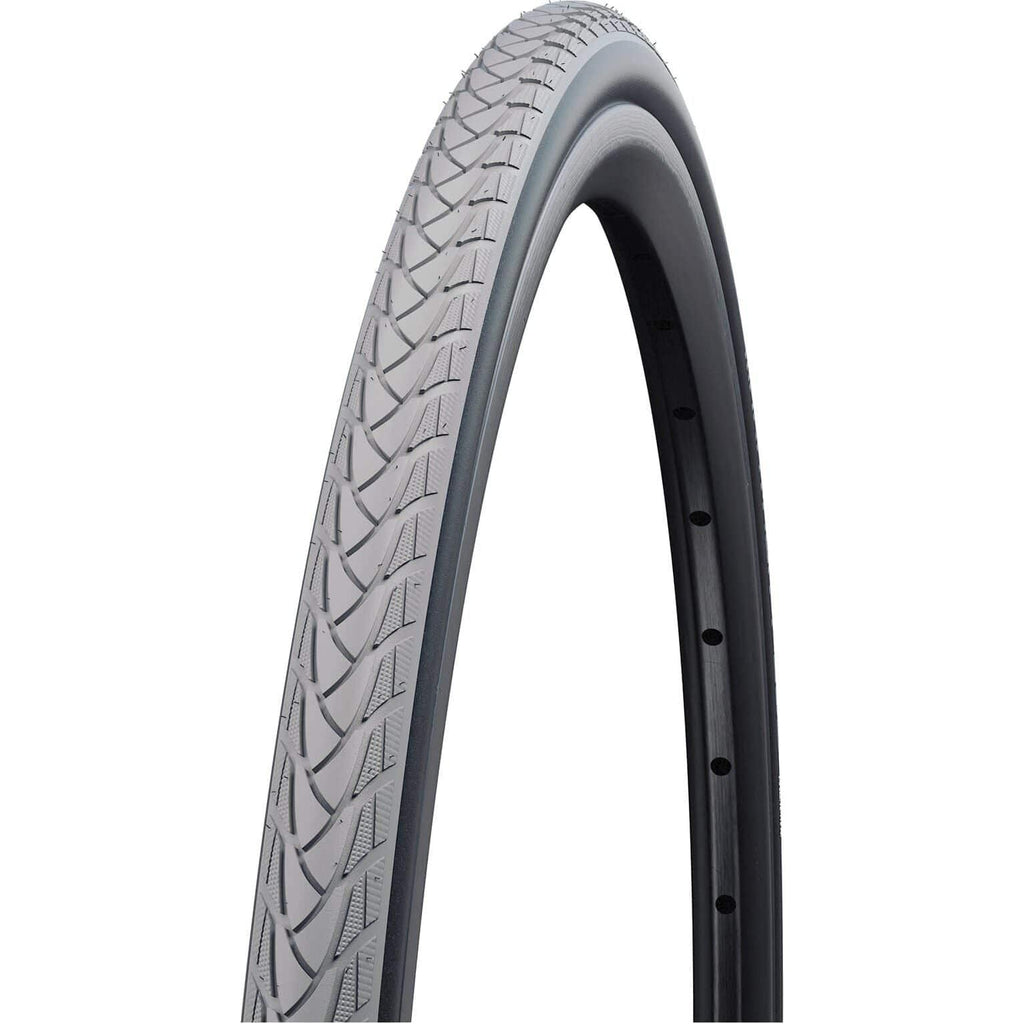 Schwalbe buitenband Marathon Plus Grijs (Rolstoel) 24x1 3/8/37-540. De onplatbare band voor de rolstoel. De Marathon Plus staat bekend als de meest betrouwbare luchtband voor de rolstoel. De SmartGuard anti-leklaag wordt voor een groot deel uit gerecycled natuurlijk rubber gemaakt. De 'Anti-Aging' zijwand verdraagt de typische overbelasting door een te lage luchtdruk beduidend langer. NB: Gebruik bij de Marathon Plus absoluut een manometer voor het instellen van de luchtdruk. Door de bijzondere opbouw van de band is een test met de duimen om de bandenspanning te 'meten' erg onbetrouwbaar.