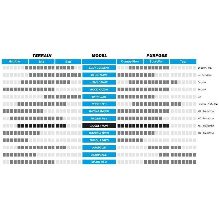 De Cross Country raket combineert snelheid en stabiliteit in de bochten op het allerhoogste niveau. Een uitmuntende allrounder voor de racetracks. Profieldesign: uitgebalanceerde verhouding tussen stabiele noppen en voldoende tussenruimtes tussen de noppen voor excellente roleigenschappen en een fantastische zelfreiniging Productspecificaties: Grootte: ETRTO 57-584 (27.5 x 2.25 Inch / 650b) Type: Vouwband Rubbermengsel: ADDIX Uitvoering: Performance, TLR Kleur: Black Skin: Twin Gewicht: 670 gram (24 oz) Bandenspanning: 1.80 - 3.70 Bar (26 - 54 psi) Max. belasting: 110 kg EPI: 67 ECE: E-25 Profiel: HS438 Binnenbanden: 19, 21, 19A, 21A, 21F