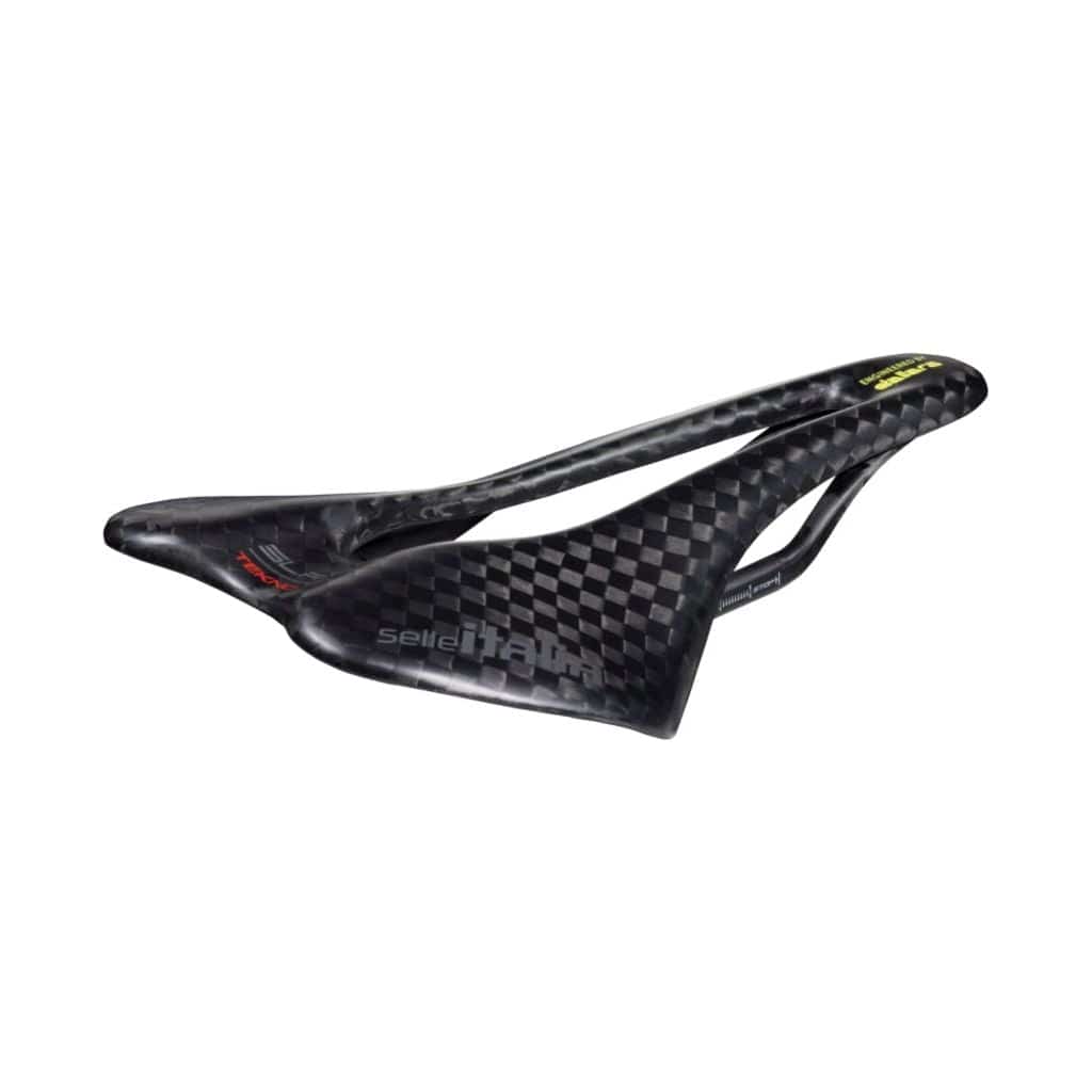 Met het lichtgewicht carbon SLR Boost Tekno Superflow zadel van Selle Italia vecht je je door de meest uitdagende races. De stevige carbon rails zorgen voor een hoog prestatieniveau zonder extra gewicht en de Superflow uitsparing verhoogt het comfort door de druk op het perineum te verminderen. Het opvallende carbonweefsel van dit zadel is de perfecte finishing touch voor de fiets - de perfecte mix van Selle Italia's klassieke vormgeving en technologische vooruitgang.