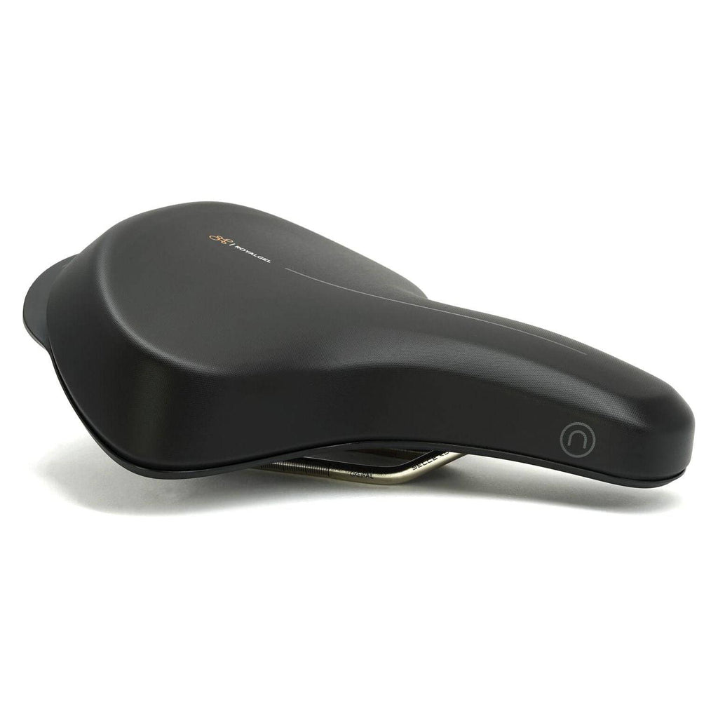 Selle Royal On Relaxed e-bike zadel. Speciaal ontworpen voor e-bikes, met een verhoogde achterkant om glijden te voorkomen en een golvende vorm waarmee men onmiddelijk in de juiste positie met de beste ondersteuning zit. De zijkanten van het zadel zijn flexibel om de stabiliteit te verhogen en het trappen te vergemakkelijken. Met HAVAC technologie en een PA-nylon (4% glasvezel) basis, die zorgen voor een lichtgewicht zadel met een hoge waterbestendigheid. De Royalgel biedt optimaal comfort en verminderd drukpunten met 40% ten opzichte van standaard zadelvullingen. Verkrijgbaar in een Atletic (fietshouding van 45 graden), Moderate (fietshouding van 60 graden) en Relaxed (fietshouding 90 graden) variant.