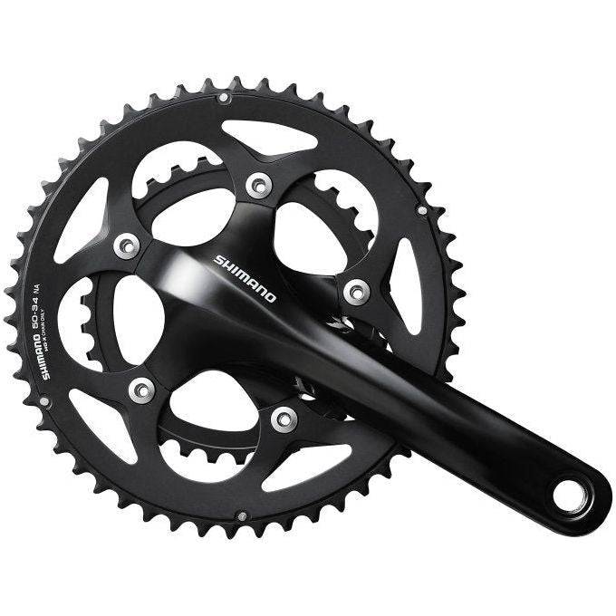 SHIMANO TOURNEY A070 Race-crankstel met 3x8/7-versnellingen. Het SHIMANO TOURNEY A070- crankstel is compatibel met 3x7- en 3x8-aandrijvingen en levert een breed bereik aan 50-39-34T-tandwieloverbrenging met een kettingbeschermer. Het gebruikt een bottom bracket-interface met rechthoekige versmalling. Lichte bediening en soepel schakelen DUAL SIS SG-X kettingblad Uitwisselbaar met SHIMANO-racevoorblad voor 8/7-speed systeem Geschikt voor vierkante trapassen 50-39-30T, kettingbeschermer Product specificaties: Model: FC-A073 Serie: SHIMANO Tourney A070 Kleur: Groepskleur Breedte BB-unit met schroefdraad: 70 mm Kettinglijn (mm): 45 Kettingbladcombinatie: 50-39-30T Compatibel BB-type: vierkante trapas Compatibele ketting: HG Lengte crankarm (mm): 170 Armen kettingblad: 5 BCD (mm): Geklonken bladen Versnellingen achter: 7/8 Aanbevolen BB Met schroefdraad (normaal): BB-UN300 (113 mm) Breedte BB-unit met schroefdraad: 68 mm Q-factor (mm): 171,5