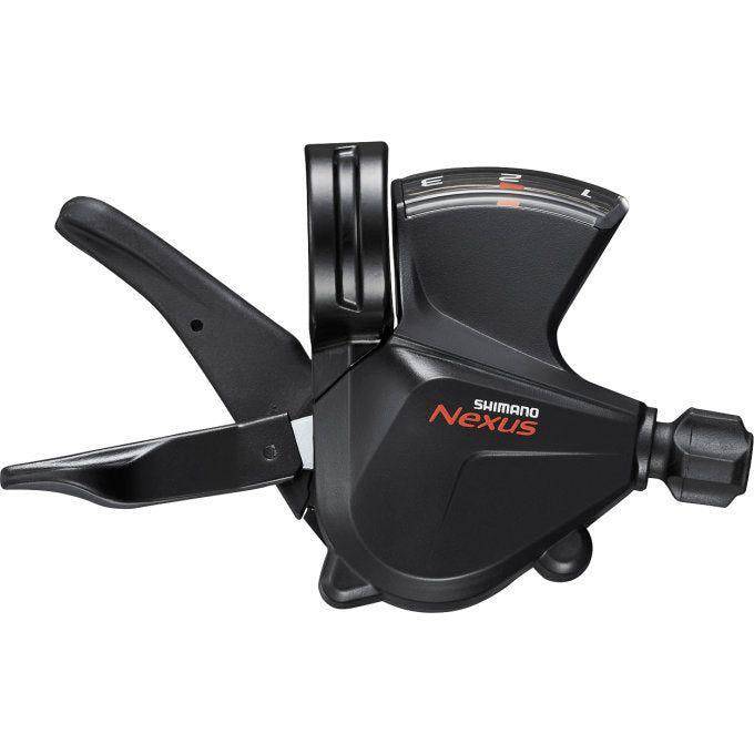 SHIMANO NEXUS - RAPIDFIRE PLUS - Schakelversteller voor INTER-3 naaf De SHIMANO NEXUS SL-C2010-3 schakelversteller heeft een comfortabele, ergonomische hendelvorm en zorgt voor intuïtief en direct schakelen. De RAPIDFIRE PLUS schakelversteller biedt een soepele multishift-werking en een lichte schakelbediening. Daarnaast is de versteller voorzien van SHIMANO's OPTICAL GEAR DISPLAY, dat fietsers laat zien in welke versnelling ze rijden. Gestroomlijnd bedieningsgedeelte Versnellingsindicator gepositioneerd onder het stuur De versnellingsindicator geeft de versnellingsstand in één oogopslag aan OPTICAL GEAR DISPLAY Lichte schakelbediening Geoptimaliseerde hendelslag voor een lichte werking Slanke behuizing van de hoofdversteller RAPIDFIRE PLUS Compatibel met INTER-3 interne naafversnelling SG-3D55/SG-3R40/SG-3C41 Product Specificaties: Model: SL-C2010-3 Serie: NEXUS INTER-3 Kleur: Zwart Klemdiameter (mm): 22.2 Max. aantal schakelstappen tegelijk (hoofdversteller/achter):1 Optisch schakelscherm: onder de stuurbuis Versnellingen achter: 3 Aanbevolen SL buitenste verzilvering : SP buiten voor IHG SL kabelafstelling: Ja Type schakelversteller: RAPIDFIRE PLUS
