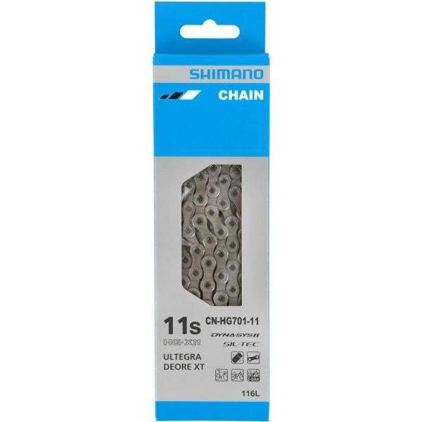 Deze nieuwe Ultegra HG701 11-Speed ketting is geoptimaliseerd voor de Shimano 2 x 11-speed groepen: Dura Ace, Ultegra en 105. De nieuwe 11-speed ketting uit de Ultegra lijn van Shimano is weer verder geoptimaliseerd ten opzichte van zijn voorganger. De ketting heeft een langere levensduur en is natuurlijk ook te gebruiken met andere 11-speed Shimano groepen. Product specificaties: Materiaal: staal Soepel en betrouwbaar schakelen Efficienter en stiller, minder onderhoud SIL-TEC oppervlaktebehandeling Geschikt voor Race, MTB en E-Bike met 11-speed Verstevigde ketting Gewicht: +/- 257 gram (dit is het gewicht van de variant met 116 schakels) 138 schakels Inclusief breekpen