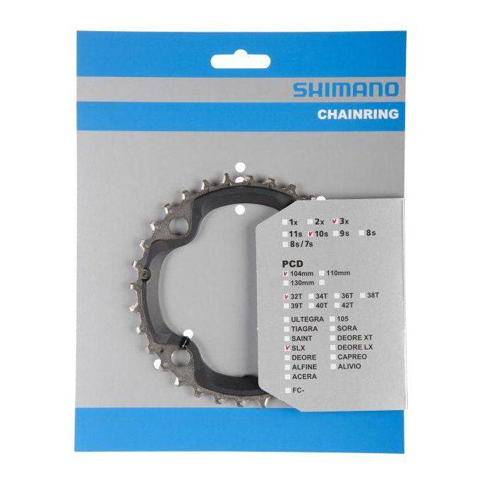 Product specificaties: Type voorblad: triple Kettingblad 32T (AE voor 42-32-24T) Geschikt voor: FC-M670 Serie: SLX Aantal tanden: 32 Snelheid: 10-speed Boutcirkeldiameter: 104 mm Materiaal: Aluminium