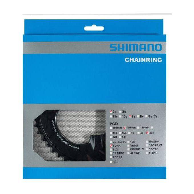 Produktspezifikationen: Groep: Sora Type: 4 arm Geschikt voor: FC-R3000 Versnellingen: 9 Boutcirkeldiameter: 110 mm Materiaal: Aluminium / resin Aantal tanden: 50 Kleur: Zwart