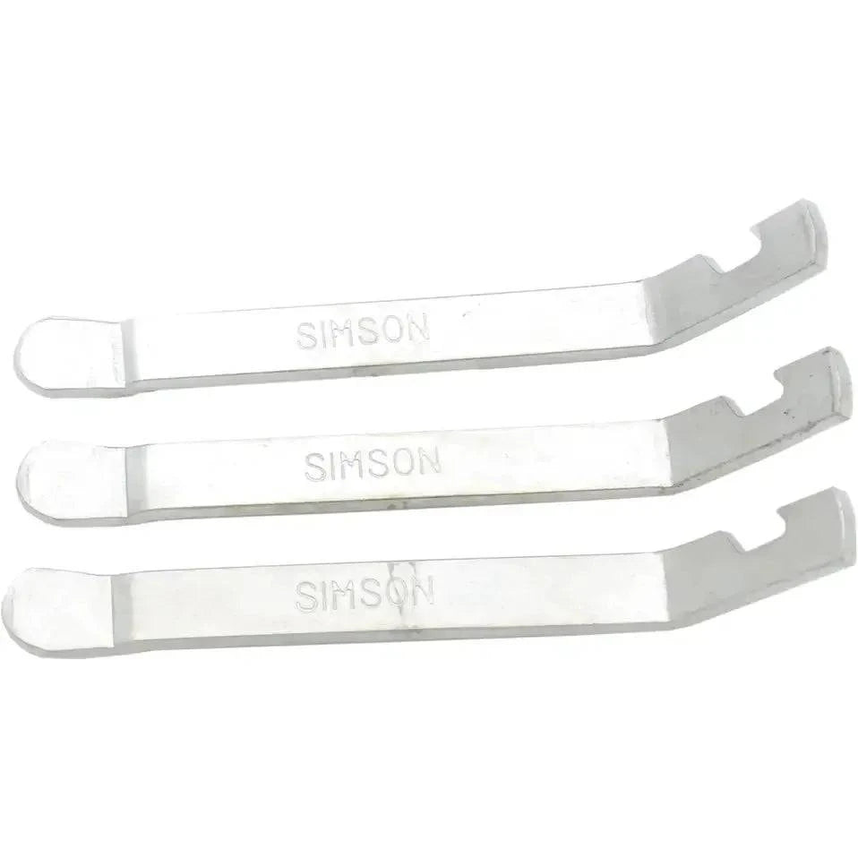 Simson Bandafnemers Metaal voor het afnemen van een fiets binnenband. De bandenlichters zijn gemaakt van metaal en zijn speciaal ontworpen voor het afnemen van buitenbanden op stalen velgen. Klik de uitsparing aan het uiteinde van de bandenlichter om een spaak. Gebruik hierna de tweede bandenlichter en haal vervolgens met de derde bandenlichter de buitenband verder van de velg af. De bandenlichters worden geleverd per drie stuks. Productspecificaties: Metaal Drie stuks Voor stalen velgen