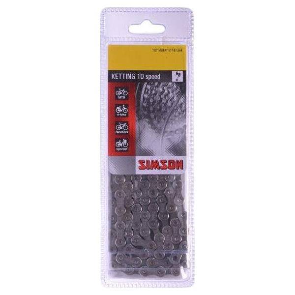 De Simson Ketting Derailleur 10 is een fietsketting met een milieuvriendelijke anti-roest coating voor fietsen met 10 derailleurversnellingen. Deze ketting heeft 116 schakels en een maat van 1/2X5/64.