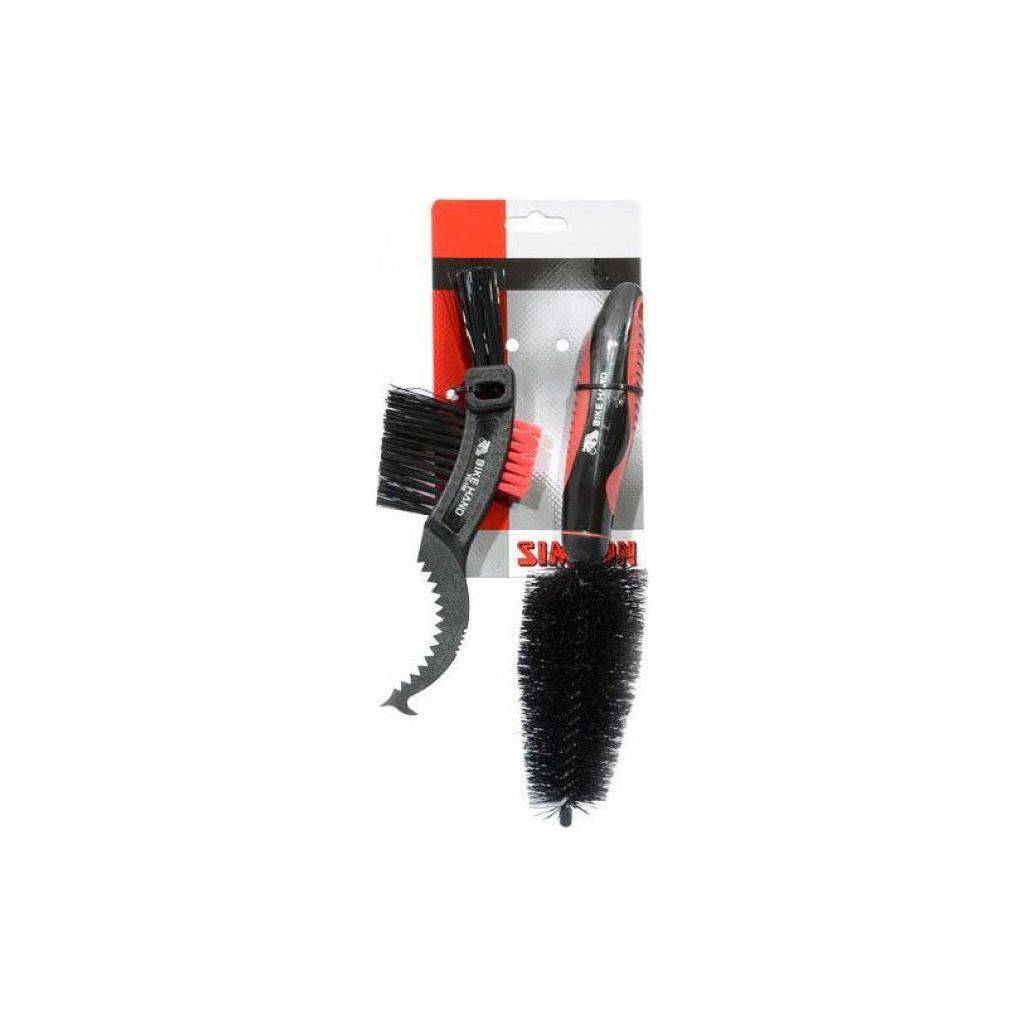Simson Onderhoudsborstel set om grondig kettingen, kettingbladen, derailleurs en remmen schoon te maken. De set bestaat uit twee verschillende borstels. Reinig met de multiborstel eenvoudig de fietsketting en het versnellingssysteem. Haal met de gekartelde kunststof kant het grove vuil tussen de tandwielen, waarna met de borstel het losgemaakte vuil kan worden verwijderd.