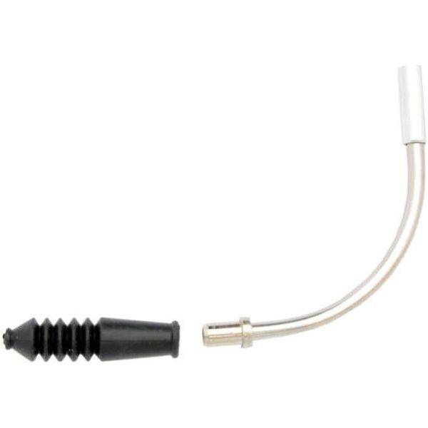 De Simson Remkabelbuis V-Brake verbindt de remkabel en het V-brake remsysteem in een hoek van 90° met elkaar. Hierdoor wordt de remkracht correct overgebracht op het V-Brake remsysteem. Sluit de buitenkabel aan op de remkabelbuis. Trek de binnenkabel van de rem door de remkabelbuis en sluit de binnenkabel aan op het V-brake remsysteem met een inbussleutel. De Simson remkabelbuis wordt geleverd inclusief stofrubber. Productspecificaties: 90° Buis Compleet met rubber Voor V-brake remmen