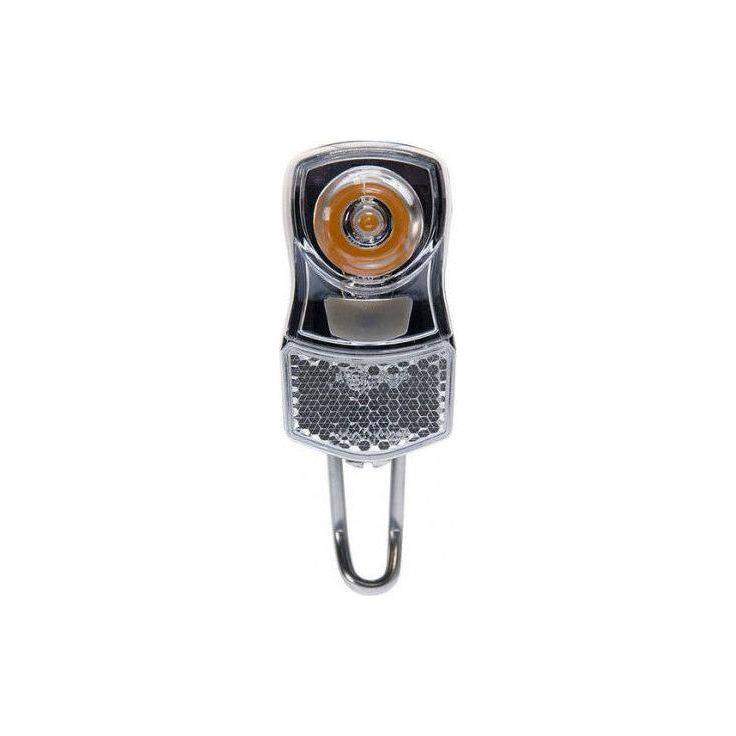 De Simson Batterij LED Koplamp "clearly" is een compacte koplamp met een strak ontwerp. De LED geeft een heldere lichtbundel met een opbrengst van 7 LUX. Deze batterij koplamp met reflector heeft een makkelijk te bedienen drukknop met aan, uit en knipper functie. De koplamp is geschikt voor voorvork montage en is eenvoudig te bevestigen op het kroonstuk van de voorvork. Inclusief 3 x AAA batterijen. Productspecificaties: voorvork montage 7 LUX Incl. 3 x AAA batterij