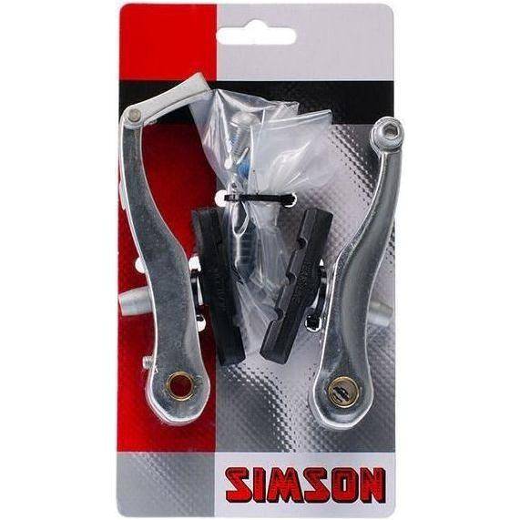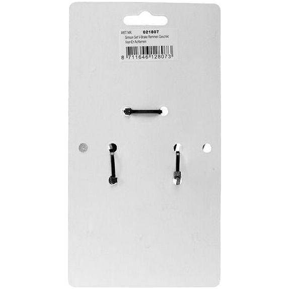 Deze Simson V-Brake remmenset is een complete remmenset voor V-brake remsystemen, geschikt voor zowel voor- als achterrem. Deze complete set wordt geleverd inclusief remblokken, twee bevestigingsbouten, remkabelbuis en rubber huls. Productspecificaties: Zowel voor als achter te monteren Complete set V-brake remsysteem.