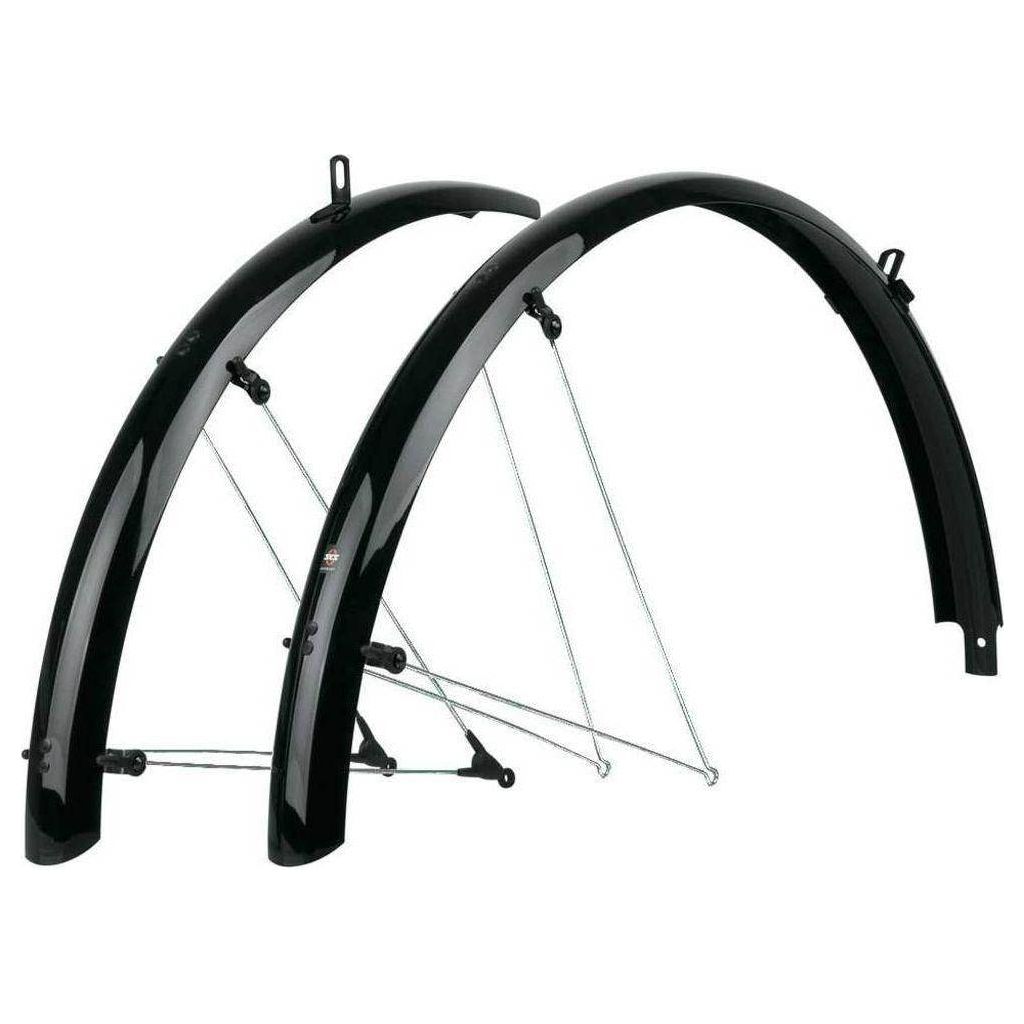 Een echte prestatie! De BLUEMELS BASIC spatbordenset van SKS integreert niet alleen perfect met de fiets, maar beschermt ook betrouwbaar tegen vuil en spatten. Dankzij de flexibele sandwichconstructie, waarbij zeer dunne aluminium strips zijn geïntegreerd in een kunststof coating, zijn de spatborden uiterst robuust, buigbestendig en beschermd tegen corrosie.