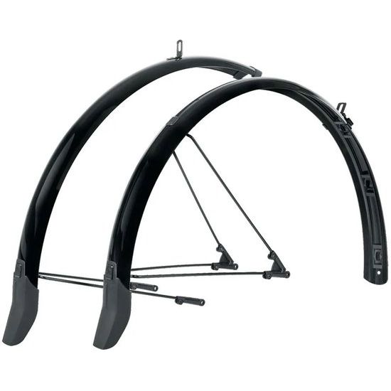 De verbeterde SKS BLUEMES CABLE LINE spatbordenset beschikt over een innovatief MK kabelgeleidingssysteem, waarbij de bedrading met behulp van clips kan worden vastgezet. De spoilers bieden optimale bescherming tegen uitsteeksels. Dankzij de flexibele sandwichconstructie, waarbij zeer dunne aluminium strips zijn ingebed in een kunststof behuizing, zijn de glanzend zwarte spatborden uiterst robuust, buigbestendig en beschermd tegen corrosie.