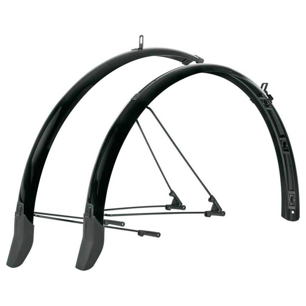 De verbeterde SKS BLUEMES CABLE LINE spatbordenset beschikt over een innovatief MK kabelgeleidingssysteem, waarbij de bedrading met behulp van clips kan worden vastgezet. De spoilers bieden optimale bescherming tegen uitsteeksels. Dankzij de flexibele sandwichconstructie, waarbij zeer dunne aluminium strips zijn ingebed in een kunststof behuizing, zijn de glanzend zwarte spatborden uiterst robuust, buigbestendig en beschermd tegen corrosie.