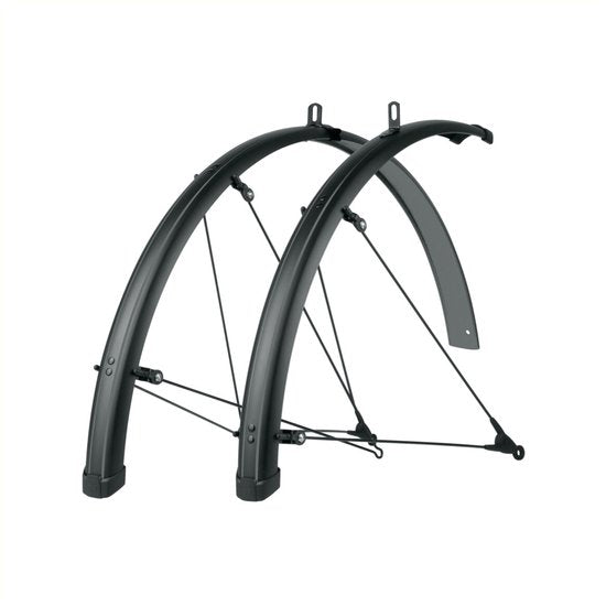 Nog lichter, nog sportiever. Met een lengte van 755 mm voor en 1250 mm achter blijven de voeten droog en blijft ook de uitstraling van de fiets behouden.