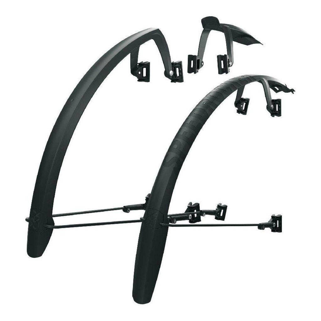 De SKS Speedrocker Spatbordset, gemaakt van slagvast kunststof, is perfect voor gravelbikes, cyclocrossers en racefietsen met schijfremmen. De dubbele spoilerfunctie en telescopische verlenging bieden optimale bescherming. Dankzij antislip klittenband en flexibele flaps past het op elk frame. Het ESC Vario-systeem zorgt voor extra ruimte en een strakke look.