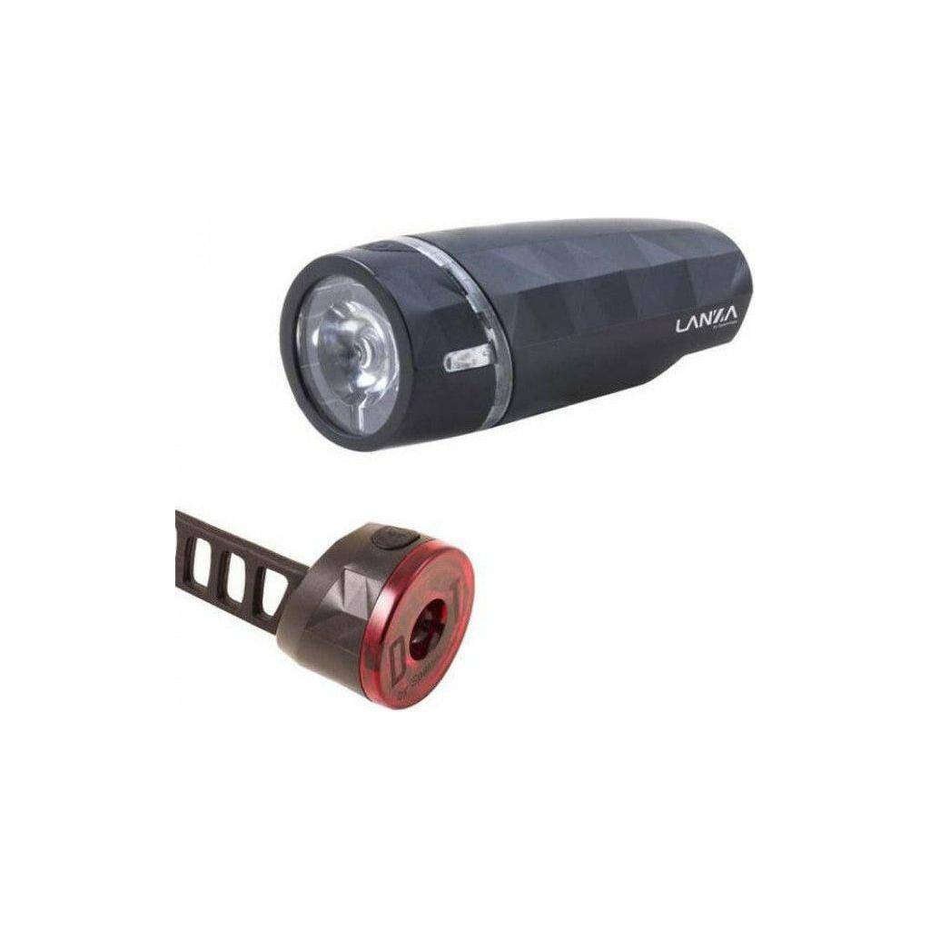 Spanninga batterij 2x AA koplamp LANZA inclusief BR29 stuurhouder en achterlicht. Laagste prijs, hoge prestaties! De koplamp is uitgerust met 1 heldere LED, 20 Lumen voor een grote zichtbaarheid tot 1500m -maar ook zijdelings zichtbaar met de verlichte glazen ring rondom.