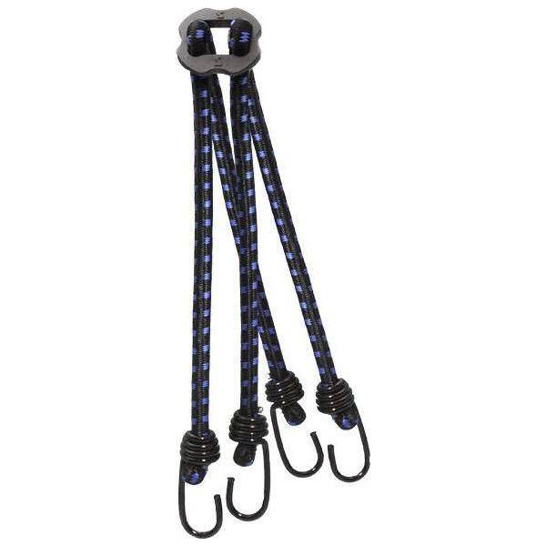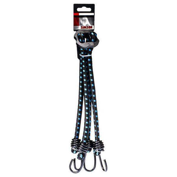 De Simson Spinbinder zwart-blauw heeft een verstelbare veiligheidsklem om stevig en veilig spullen vast te zetten op de bagagedrager. De spinbinder is eenvoudig te verstellen of te splitsen in twee losse binders door het kunststof tussenstuk te verwijderen. De lengte van de spinbinder is 60 centimeter en de 4 armen maken de spinbinder geschikt voor diverse doeleinden. Zo is de universele snelbinder onder andere te gebruiken voor fiets, scooter of motor.